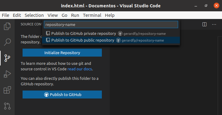 Per a publicar una web a GitHub Pages, primer s'ha de publicar el repository a GitHub.